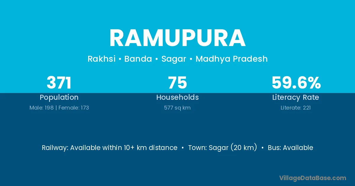 Ramupura village has a total population of 1,161 people, of which 632 are males and 529 are females.