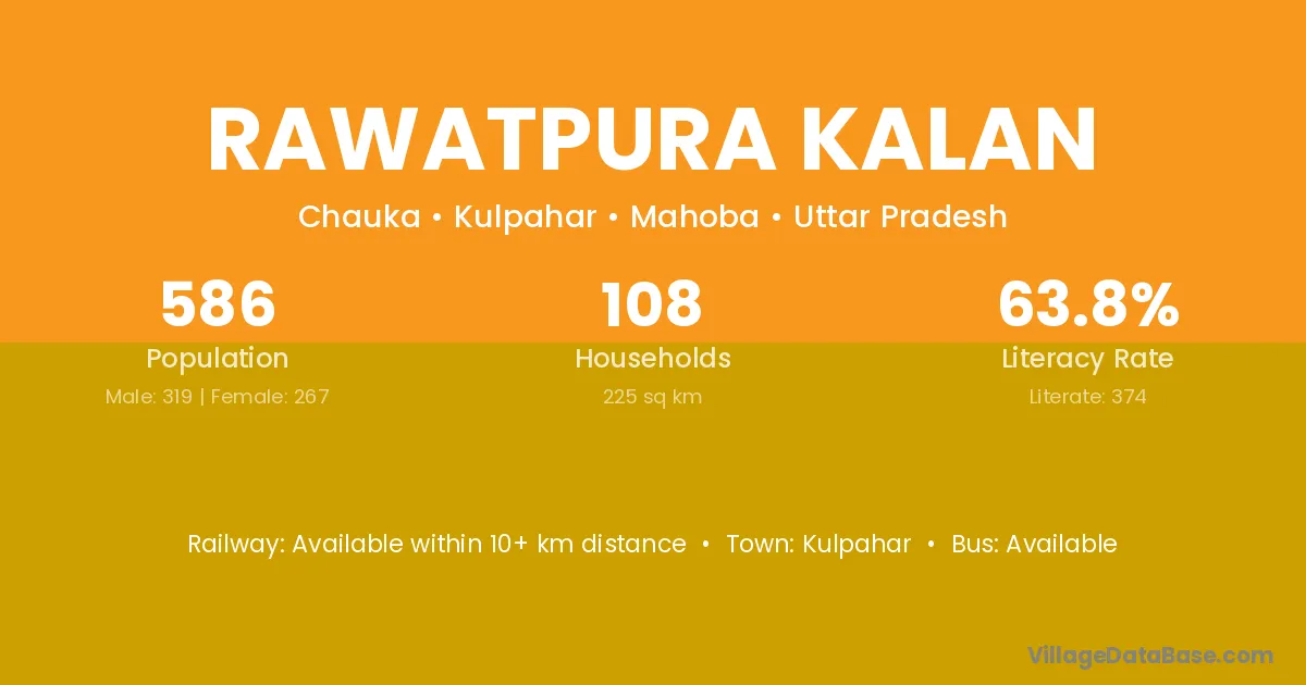 Rawatpura Kalan village has a total population of 586 people, of which 319 are males and 267 are females.