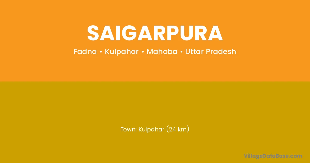 Kulpahar (24 km) is the nearest town to Saigarpura village for major economic activities and is located approximately 24 km away.