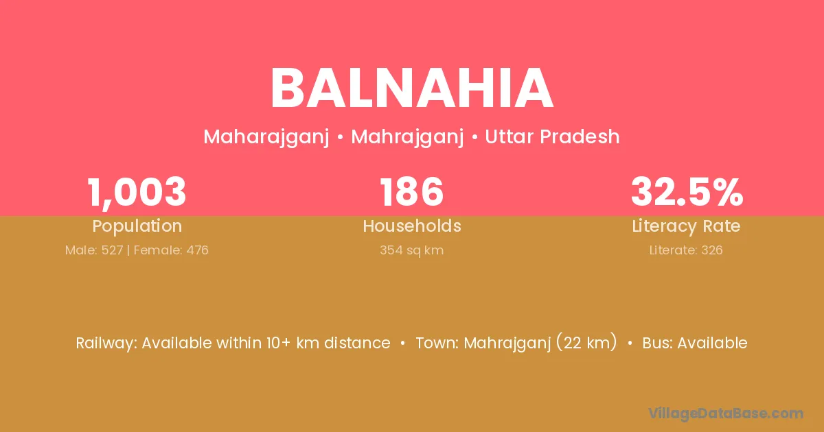 Mahrajganj (22 km) is the nearest town to Balnahia village for major economic activities and is located approximately 22 km away.