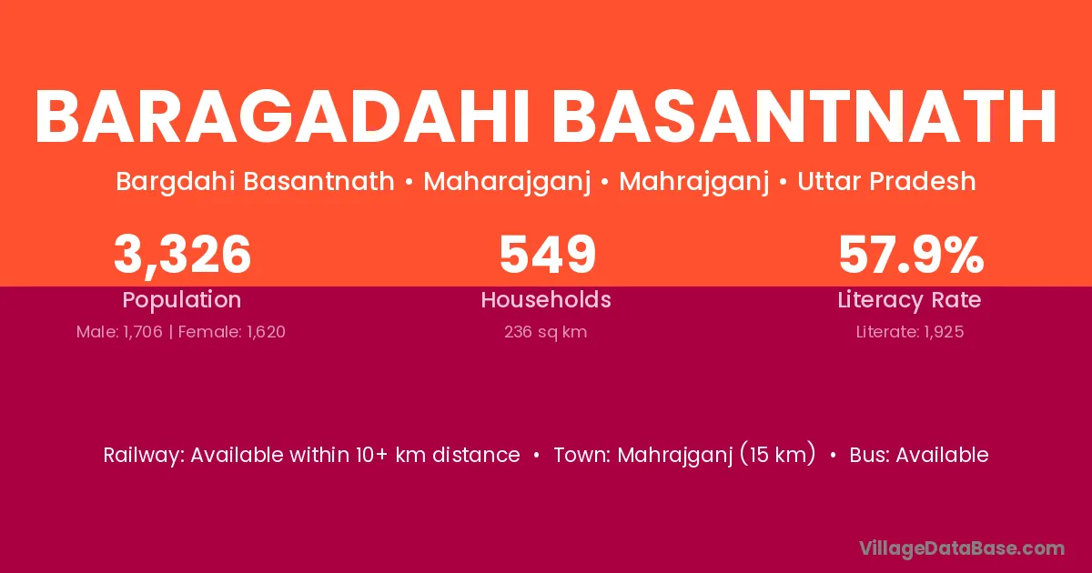 Mahrajganj (15 km) is the nearest town to Baragadahi Basantnath village for major economic activities and is located approximately 15 km away.