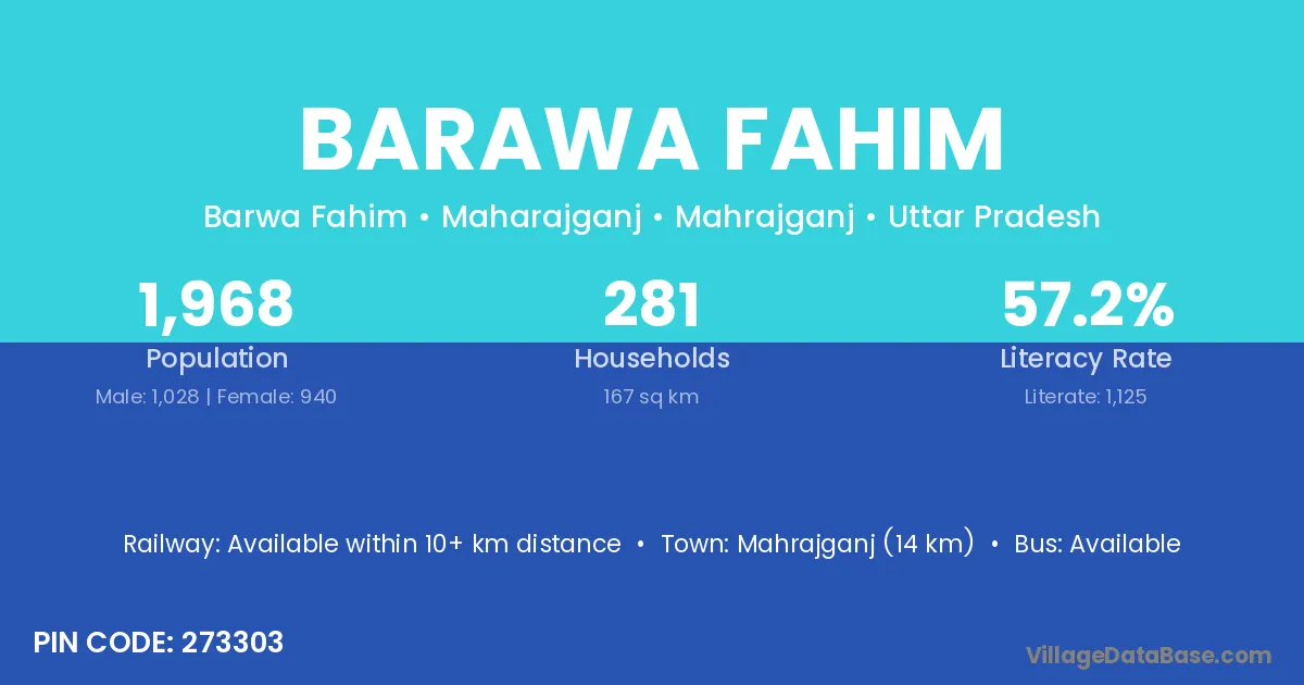 Mahrajganj (14 km) is the nearest town to Barawa Fahim village for major economic activities and is located approximately 14 km away.