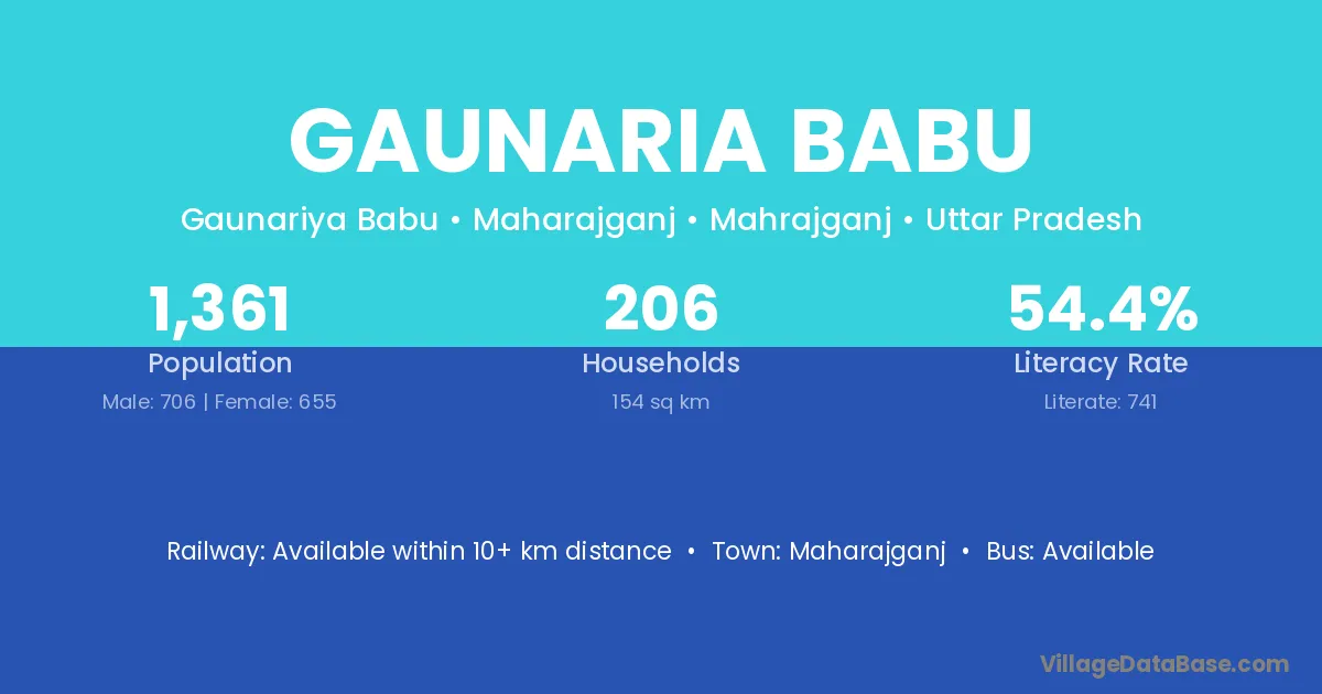 Gaunaria Babu village has a total population of 1,361 people, of which 706 are males and 655 are females.