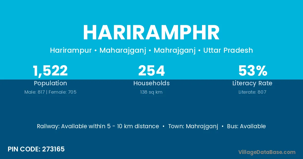Mahrajganj is the nearest town to Hariramphr village for major economic activities