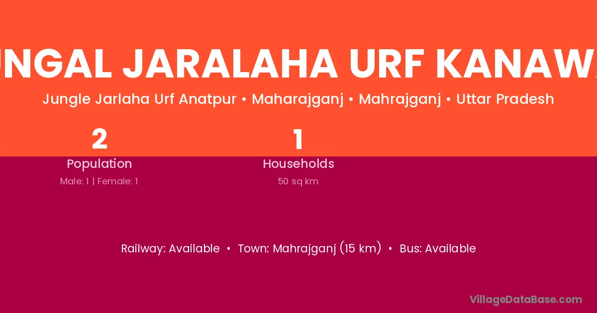 Mahrajganj (15 km) is the nearest town to Jungal Jaralaha Urf Kanawa I village for major economic activities and is located approximately 15 km away.