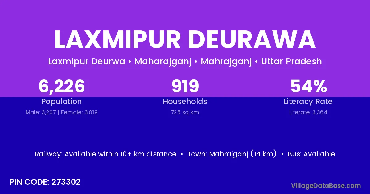 Laxmipur Deurawa village has a total population of 6,226 people, of which 3,207 are males and 3,019 are females.