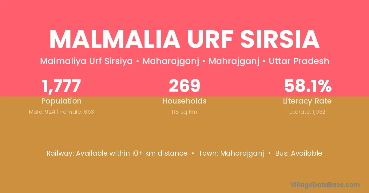 Maharajganj is the nearest town to Malmalia Urf Sirsia village for major economic activities