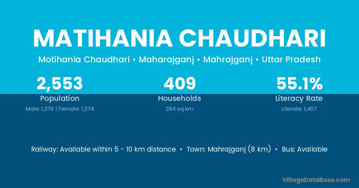 Mahrajganj (8 km) is the nearest town to Matihania Chaudhari village for major economic activities and is located approximately 8 km away.
