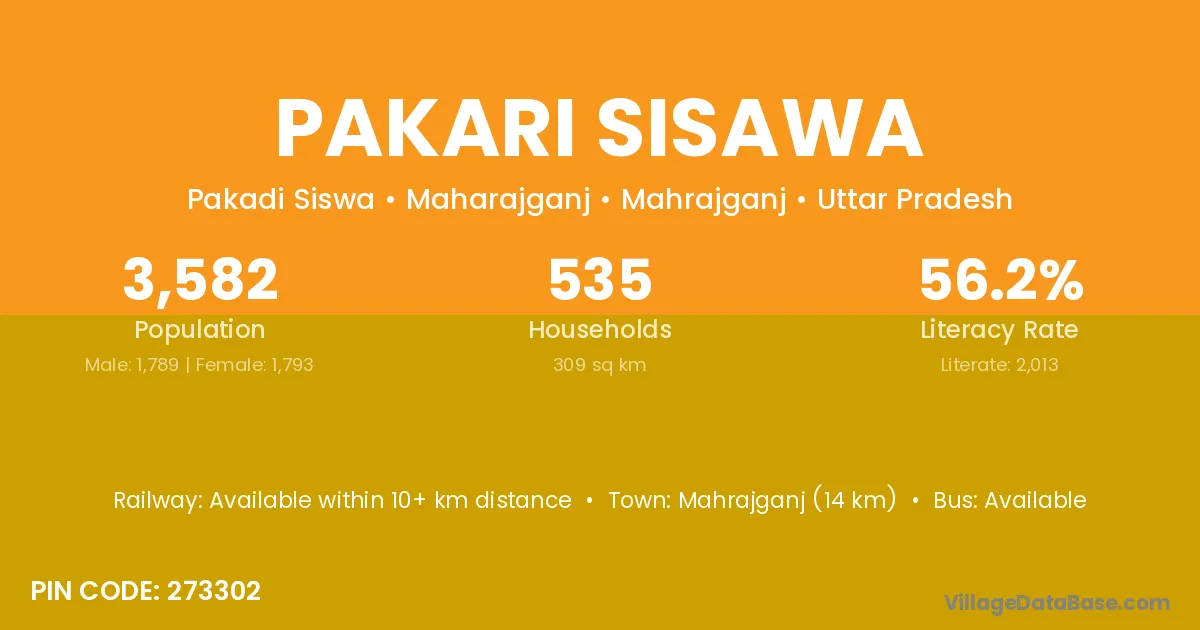 Mahrajganj (14 km) is the nearest town to Pakari Sisawa village for major economic activities and is located approximately 14 km away.