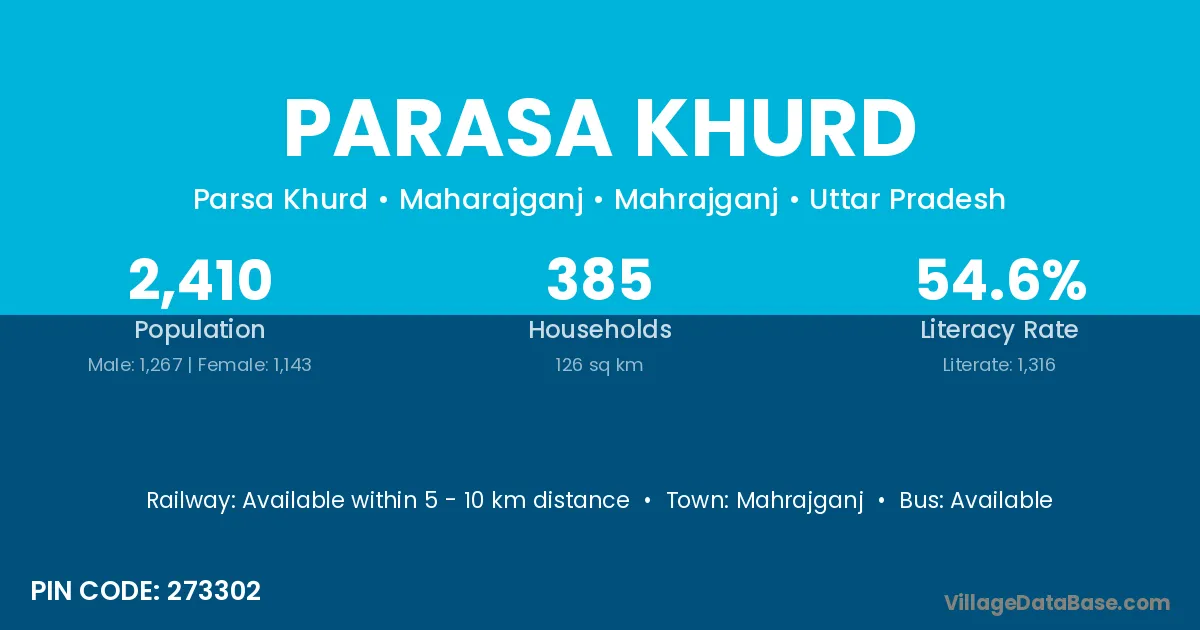 Parasa Khurd village has a total population of 2,410 people, of which 1,267 are males and 1,143 are females.