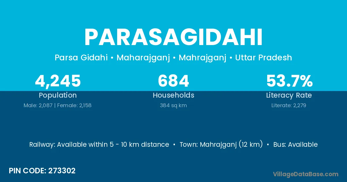 Mahrajganj (12 km) is the nearest town to Parasagidahi village for major economic activities and is located approximately 12 km away.