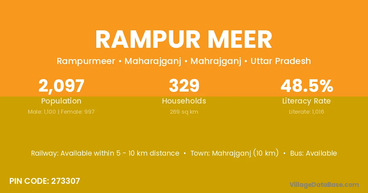 Mahrajganj (10 km) is the nearest town to Rampur Meer village for major economic activities and is located approximately 10 km away.
