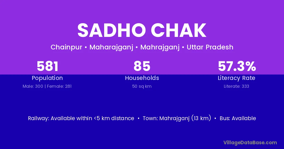 Mahrajganj (13 km) is the nearest town to Sadho Chak village for major economic activities and is located approximately 13 km away.