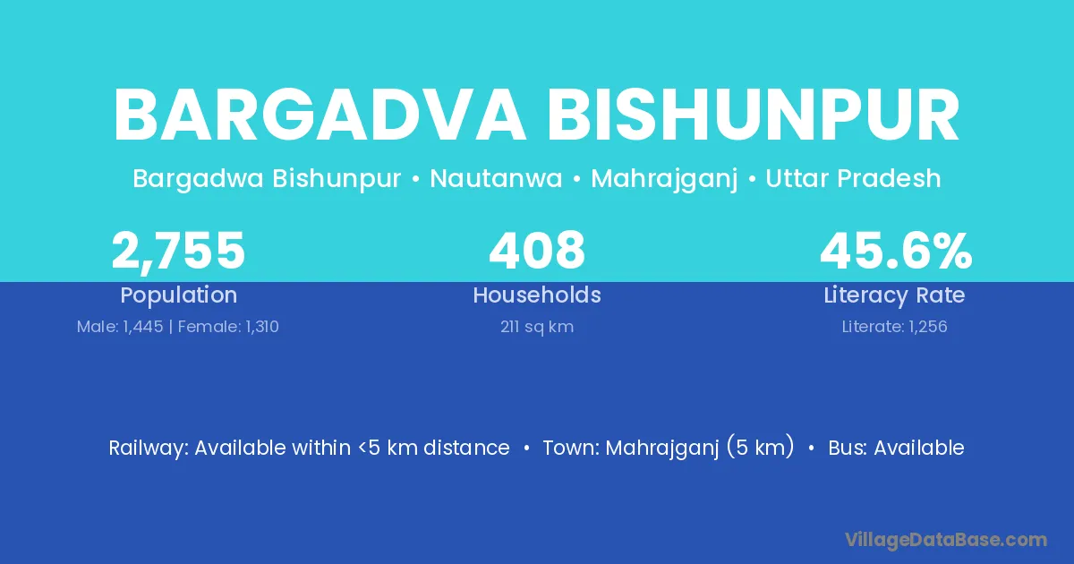 Mahrajganj (5 km) is the nearest town to Bargadva Bishunpur village for major economic activities and is located approximately 5 km away.