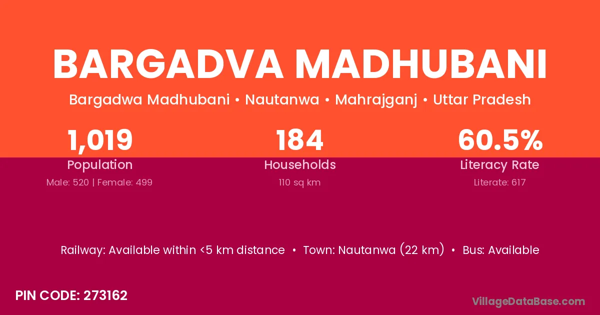 Nautanwa (22 km) is the nearest town to Bargadva Madhubani village for major economic activities and is located approximately 22 km away.