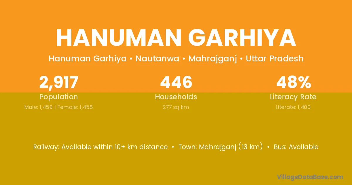 Mahrajganj (13 km) is the nearest town to Hanuman Garhiya village for major economic activities and is located approximately 13 km away.
