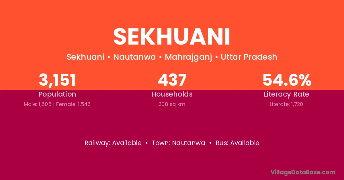 Sekhuani village has a total population of 3,151 people, of which 1,605 are males and 1,546 are females.