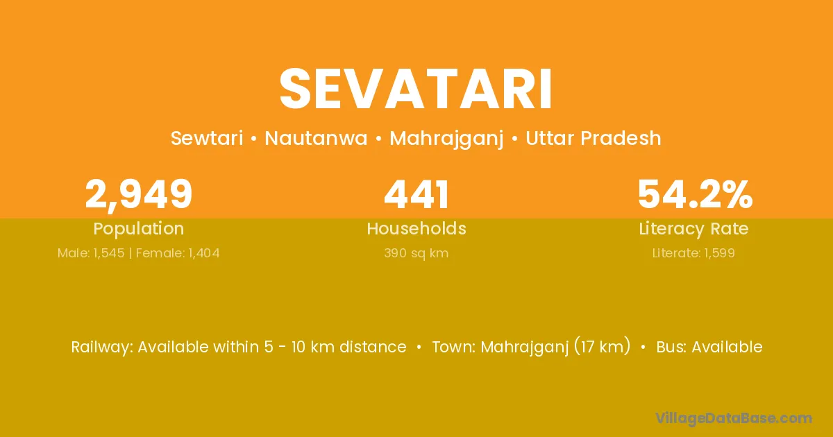 Mahrajganj (17 km) is the nearest town to Sevatari village for major economic activities and is located approximately 17 km away.