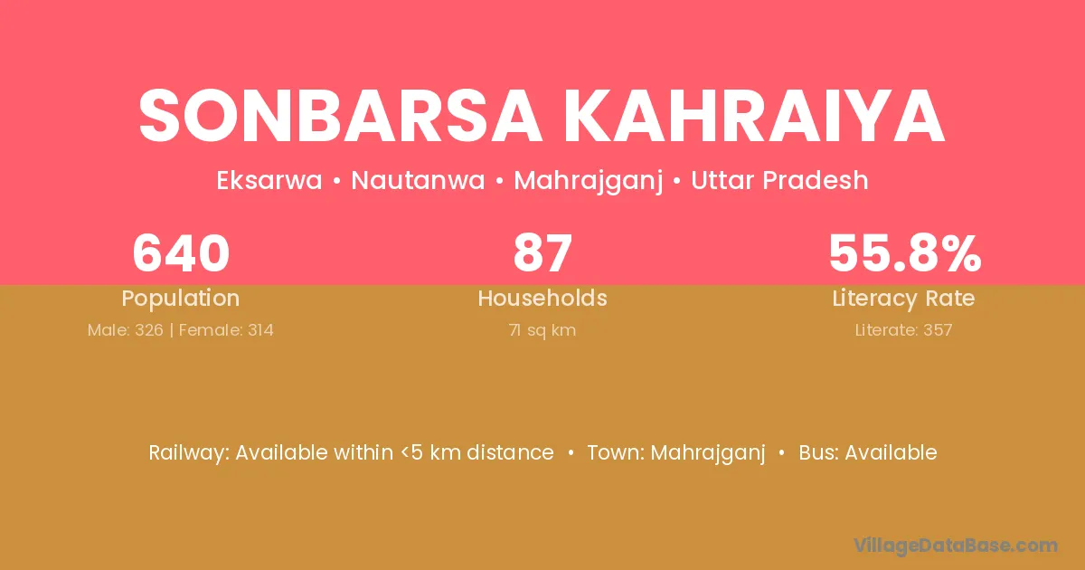 Sonbarsa Kahraiya village has a total population of 640 people, of which 326 are males and 314 are females.