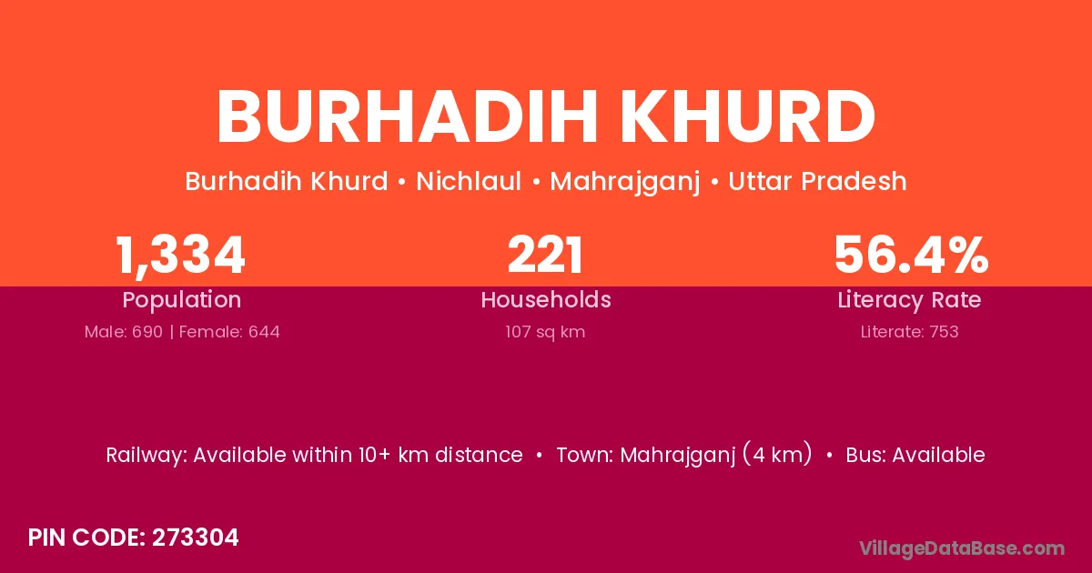 Mahrajganj (4 km) is the nearest town to Burhadih Khurd village for major economic activities and is located approximately 4 km away.
