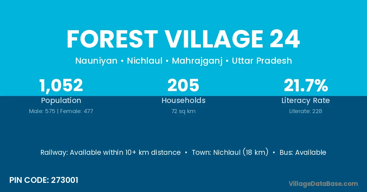 Nichlaul (18 km) is the nearest town to Forest Village 24 village for major economic activities and is located approximately 18 km away.