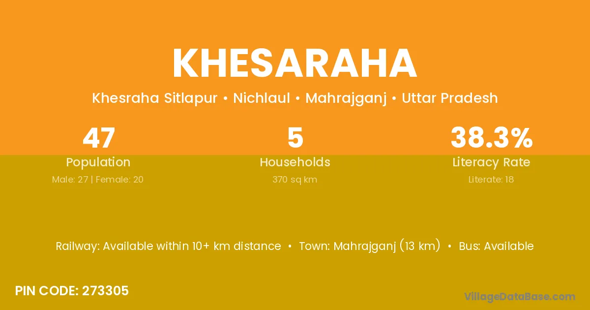 Mahrajganj (13 km) is the nearest town to Khesaraha village for major economic activities and is located approximately 13 km away.