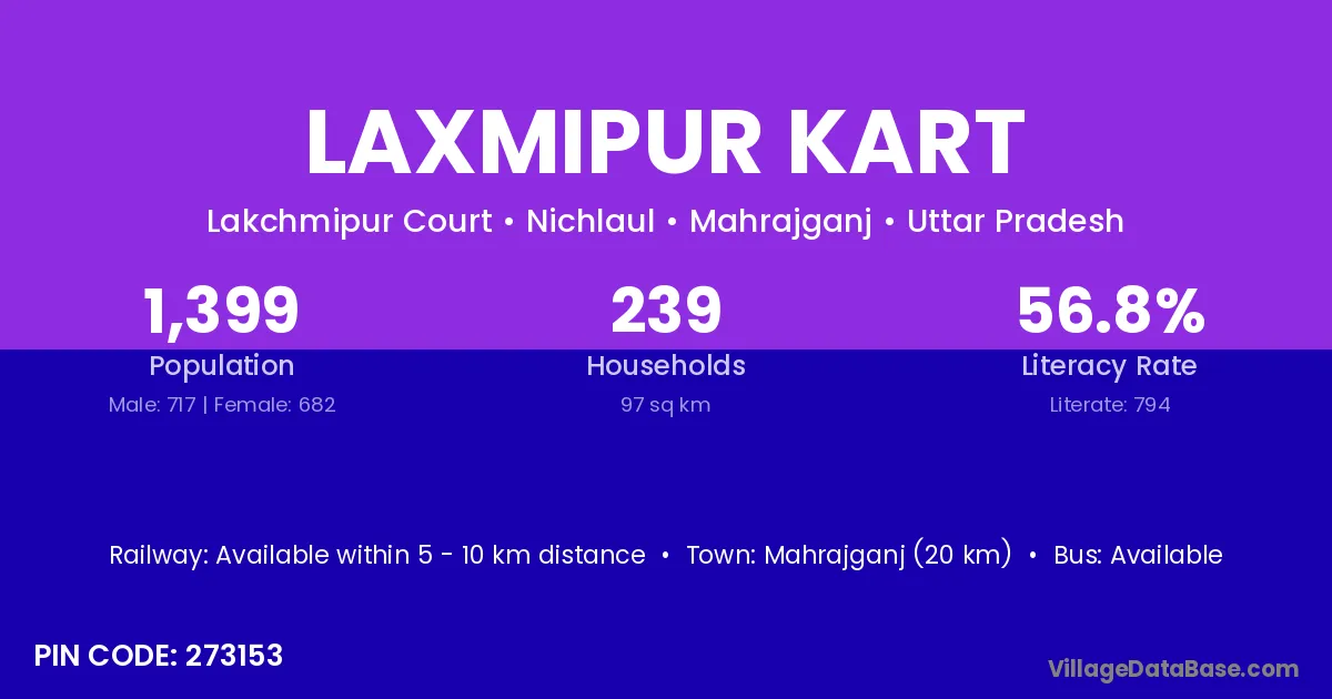 Mahrajganj (20 km) is the nearest town to Laxmipur Kart village for major economic activities and is located approximately 20 km away.