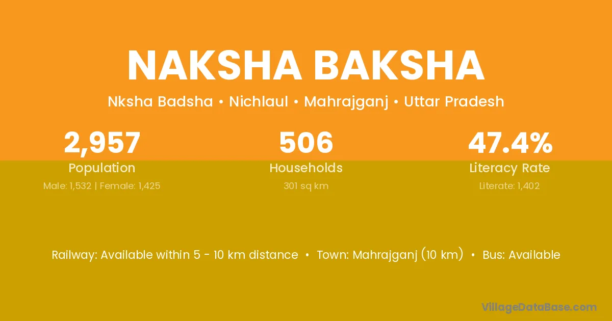 Mahrajganj (10 km) is the nearest town to Naksha Baksha village for major economic activities and is located approximately 10 km away.