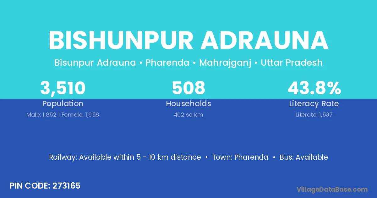 Pharenda is the nearest town to Bishunpur Adrauna village for major economic activities