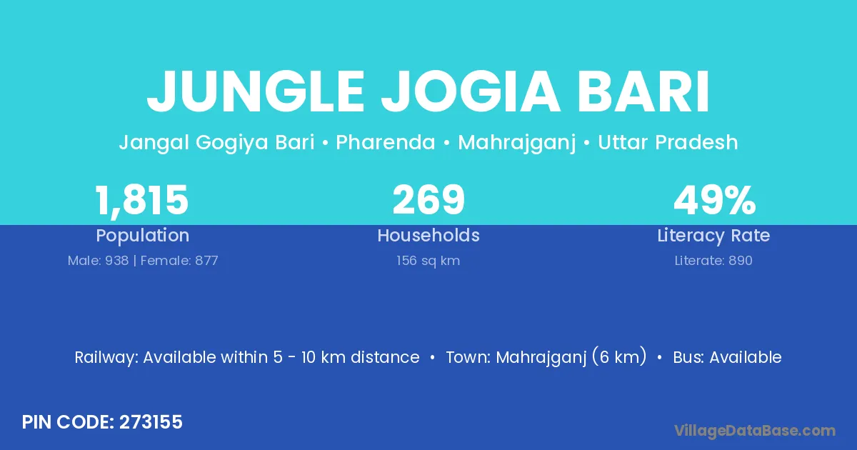Jungle Jogia Bari village has a total population of 1,815 people, of which 938 are males and 877 are females.