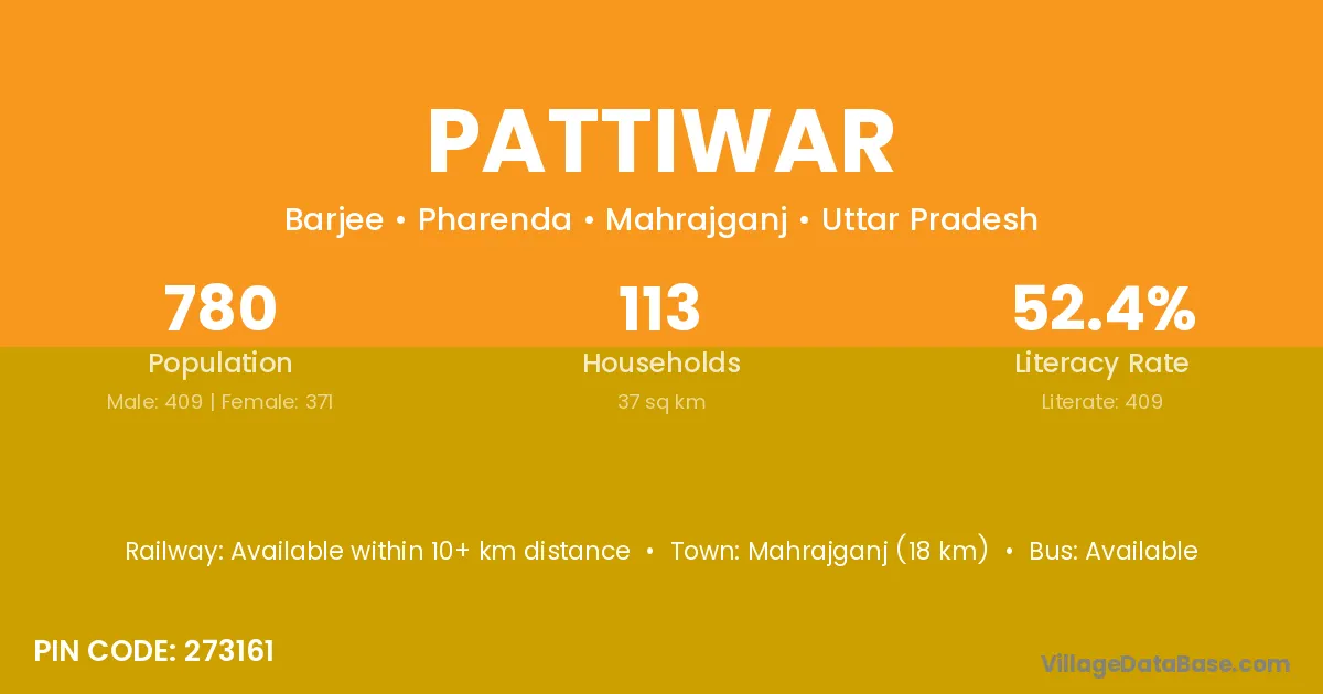 Mahrajganj (18 km) is the nearest town to Pattiwar village for major economic activities and is located approximately 18 km away.