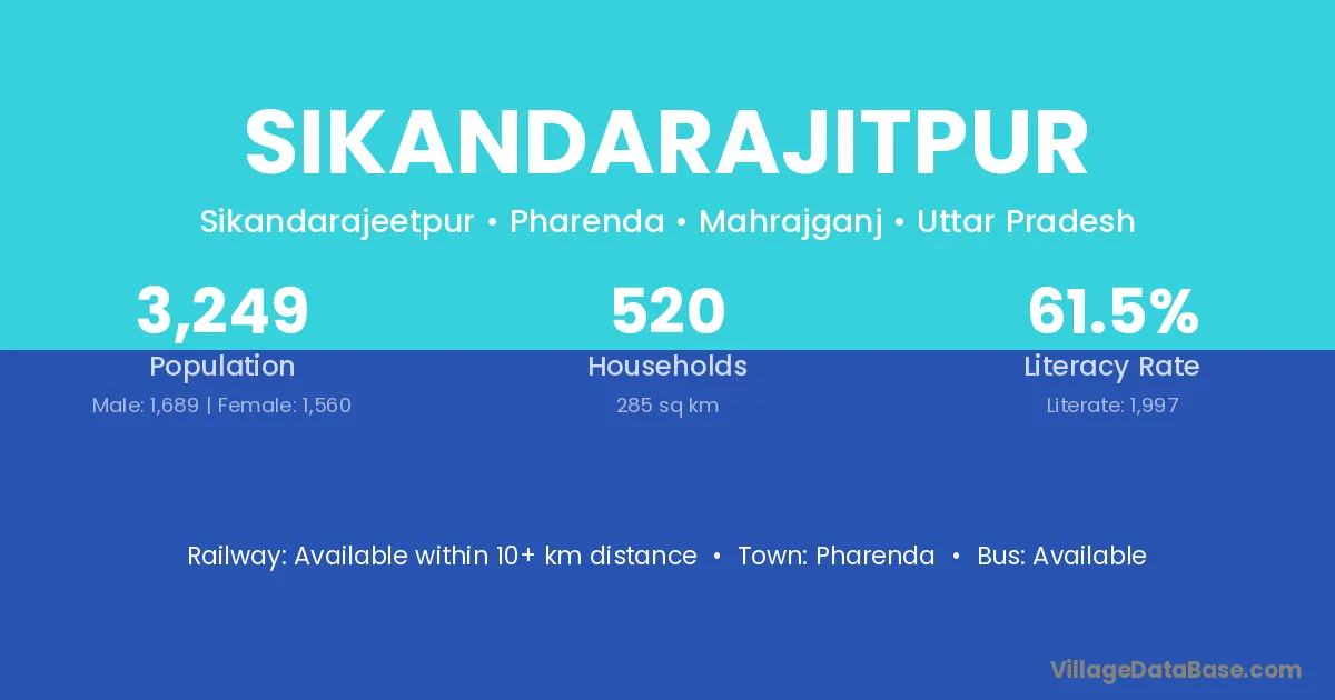 Sikandarajitpur village has a total population of 3,249 people, of which 1,689 are males and 1,560 are females.