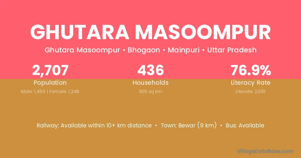 Bewar (9 km) is the nearest town to Ghutara Masoompur village for major economic activities and is located approximately 9 km away.