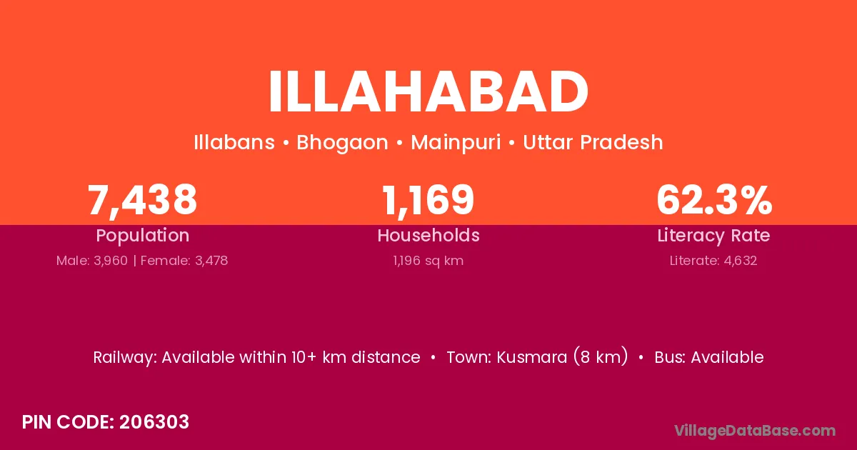 Kusmara (8 km) is the nearest town to Illahabad village for major economic activities and is located approximately 8 km away.