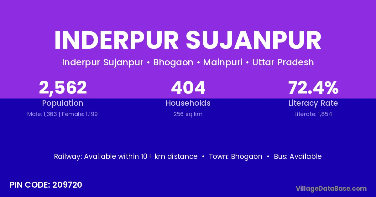 Bhogaon is the nearest town to Inderpur Sujanpur village for major economic activities