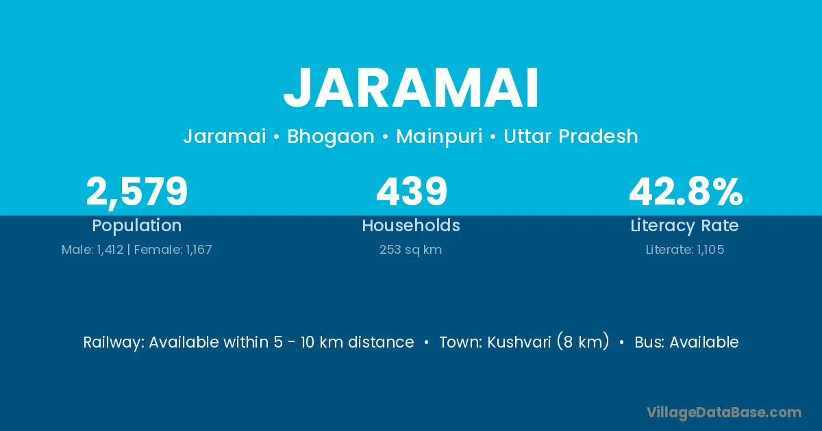 Kushvari (8 km) is the nearest town to Jaramai village for major economic activities and is located approximately 8 km away.