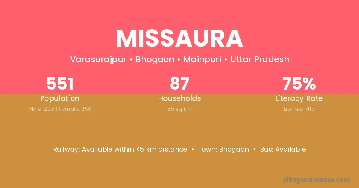 Missaura village has a total population of 551 people, of which 293 are males and 258 are females.