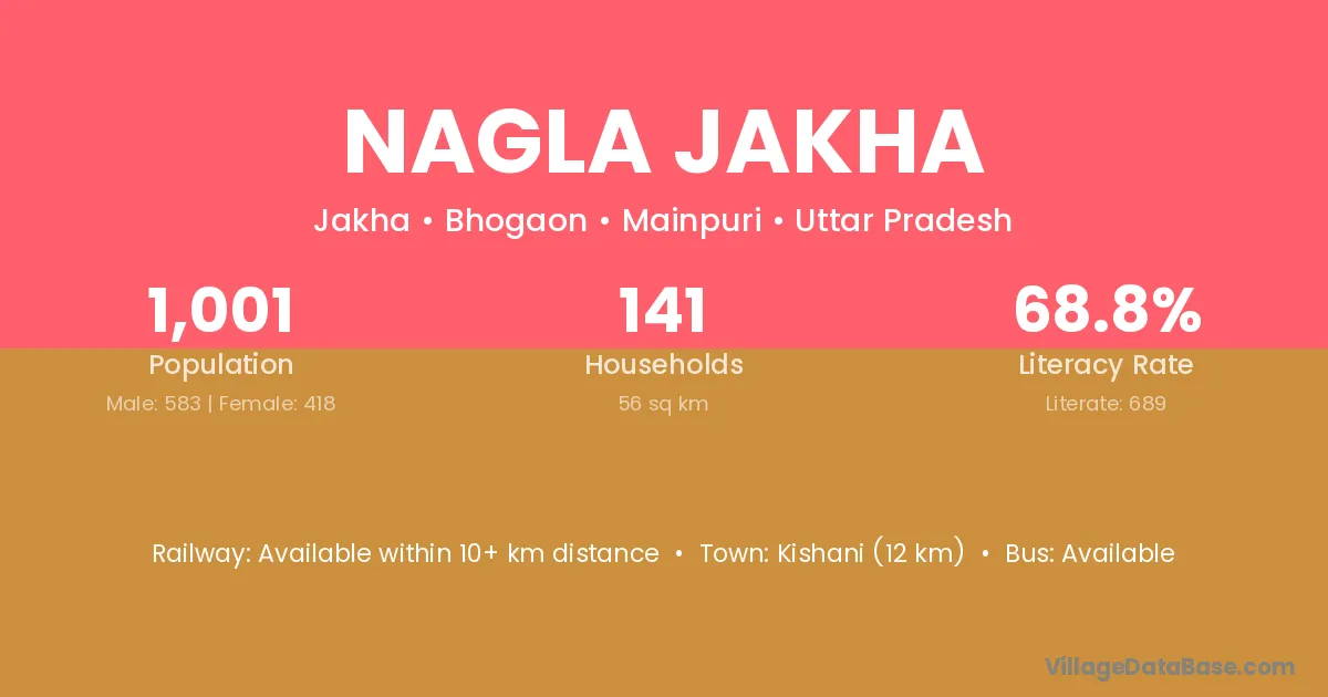 Nagla Jakha village has a total population of 1,001 people, of which 583 are males and 418 are females.