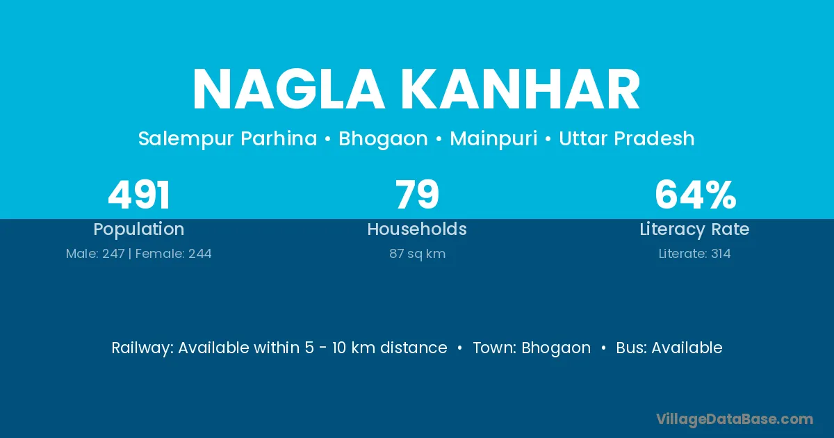 Nagla Kanhar village has a total population of 491 people, of which 247 are males and 244 are females.