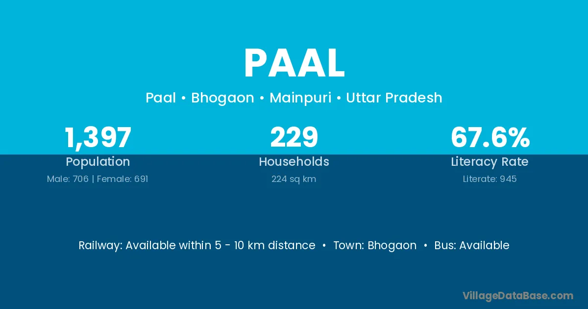 Paal village has a total population of 1,397 people, of which 706 are males and 691 are females.