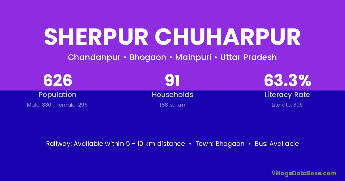 Sherpur Chuharpur village has a total population of 626 people, of which 330 are males and 296 are females.