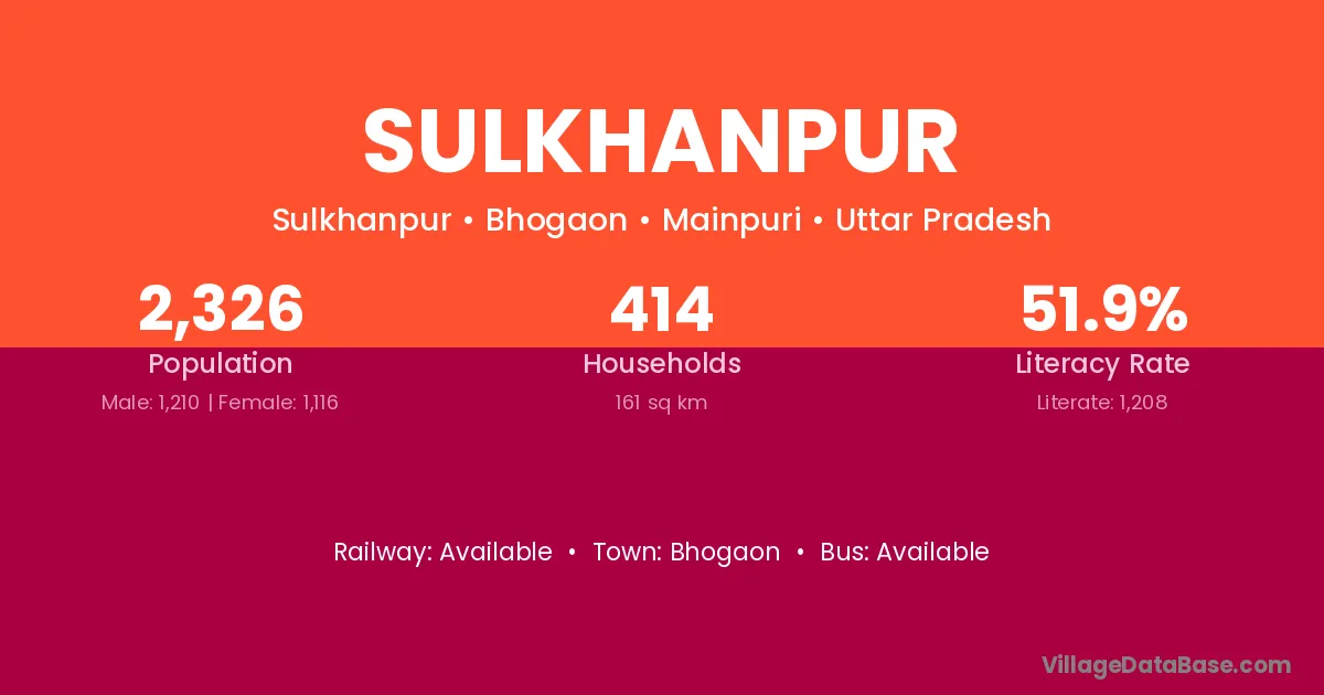 Sulkhanpur village has a total population of 2,326 people, of which 1,210 are males and 1,116 are females.