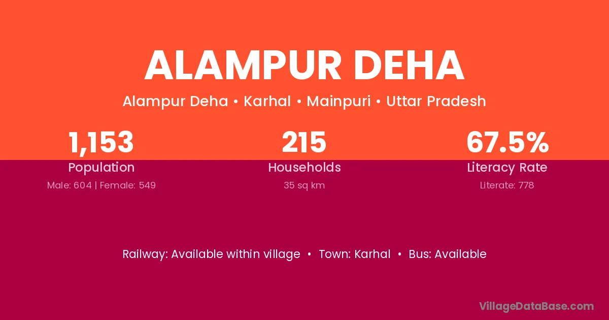 Alampur Deha village has a total population of 1,153 people, of which 604 are males and 549 are females.