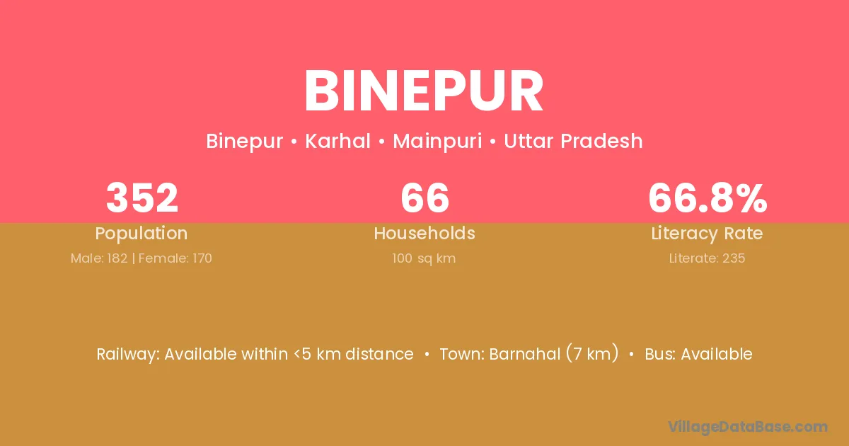 Barnahal (7 km) is the nearest town to Binepur village for major economic activities and is located approximately 7 km away.