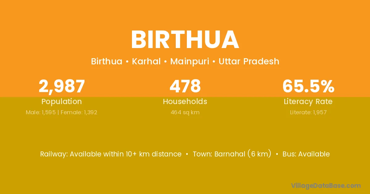 Barnahal (6 km) is the nearest town to Birthua village for major economic activities and is located approximately 6 km away.