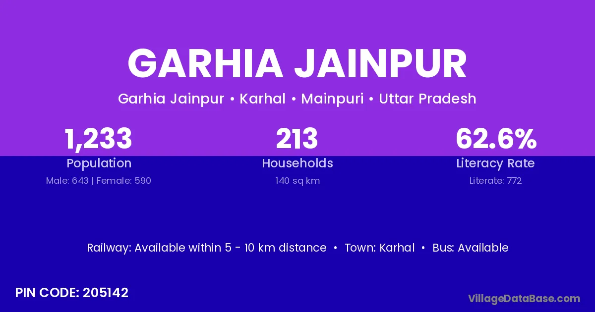 Karhal is the nearest town to Garhia Jainpur village for major economic activities