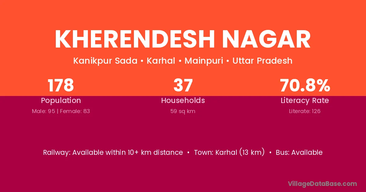 Karhal (13 km) is the nearest town to Kherendesh Nagar village for major economic activities and is located approximately 13 km away.