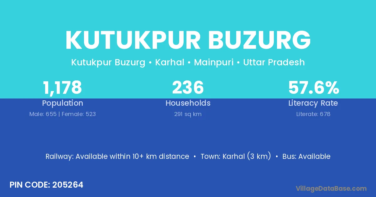 Karhal (3 km) is the nearest town to Kutukpur Buzurg village for major economic activities and is located approximately 3 km away.