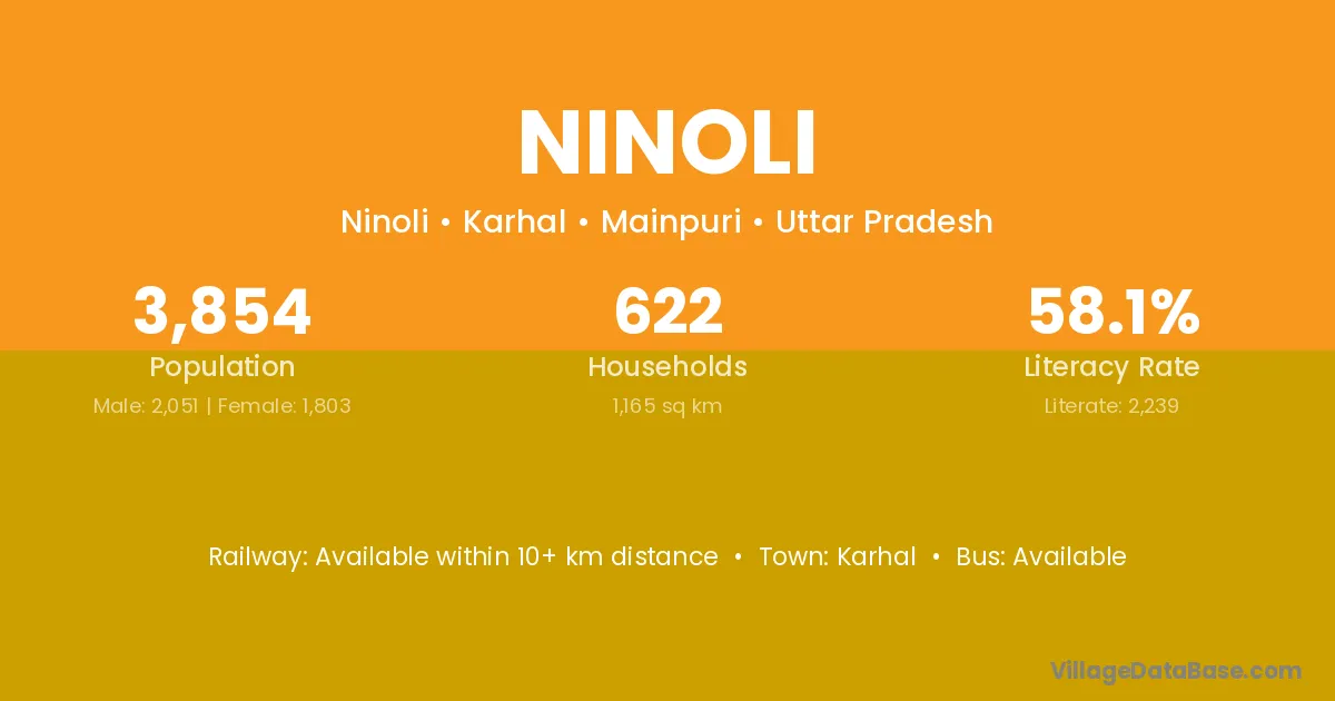 Karhal is the nearest town to Ninoli village for major economic activities