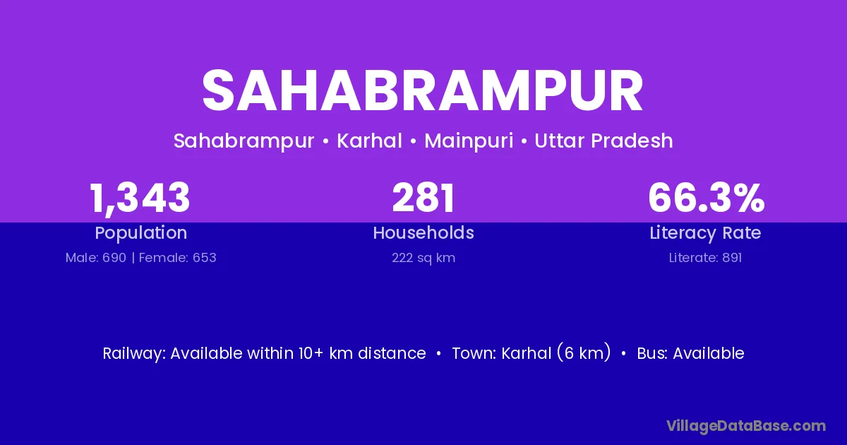 Karhal (6 km) is the nearest town to Sahabrampur village for major economic activities and is located approximately 6 km away.